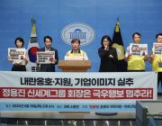 일자: 2025.09.29 / 조회수: 304 진보당 윤종오 의원과 마트산업노동조합이 18일 국회 소통관에서 기자회견을 열고 정용진 신세계그룹 회장의 행보를 규탄하며 즉각 멈출 것을 촉구했다. 트럼프 주니어, 정용진 초청으로 방한 10대 그룹 총수 등 재계인사 만날 듯 통상 압박 속 행보 희소식 주목, 신세계 주가 하락... |